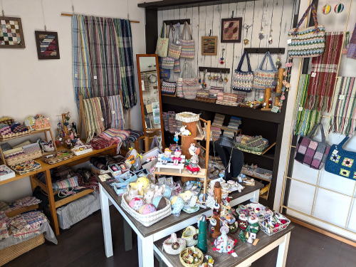 オリジナルの手作り品を置いています。販売作品は、手織り、手編みで小物を制作している「佳古楪」の作品を中心に、